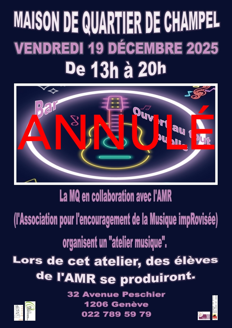 Les ateliers musicaux avec l’AMR (l’Association pour l’encouragement de la Musique impRovisée) permettent à différents musiciens de se produire et donc de mettre en pratique les enseignements prodigués par leurs professeurs de musique.