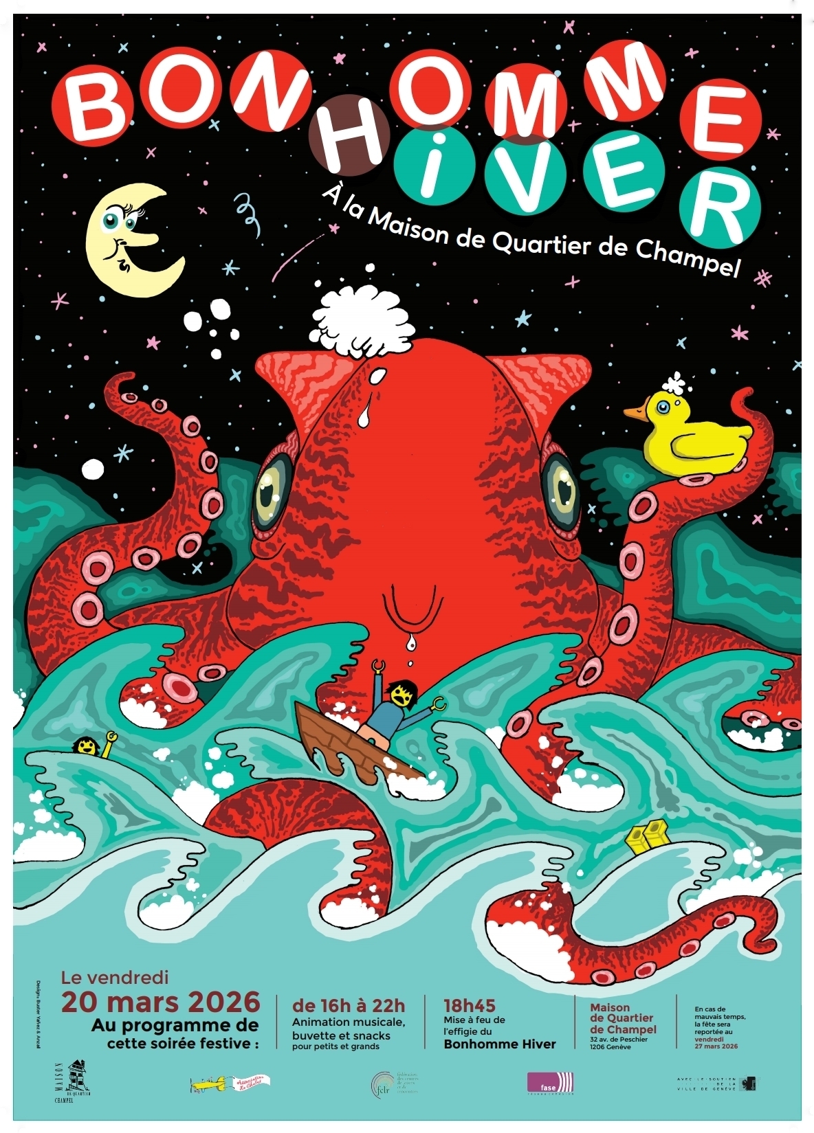 Rendez-vous vendredi 20 mars 2026 à la Maison de Quartier de Champel pour une soirée festive inoubliable !