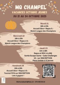 Le formulaire d’inscription en ligne se trouve sur le QR code et le lien suivant : https://framaforms.org/mq-champel-accueils-libres-jeunes-octobre-2025-1727525278?info=republished