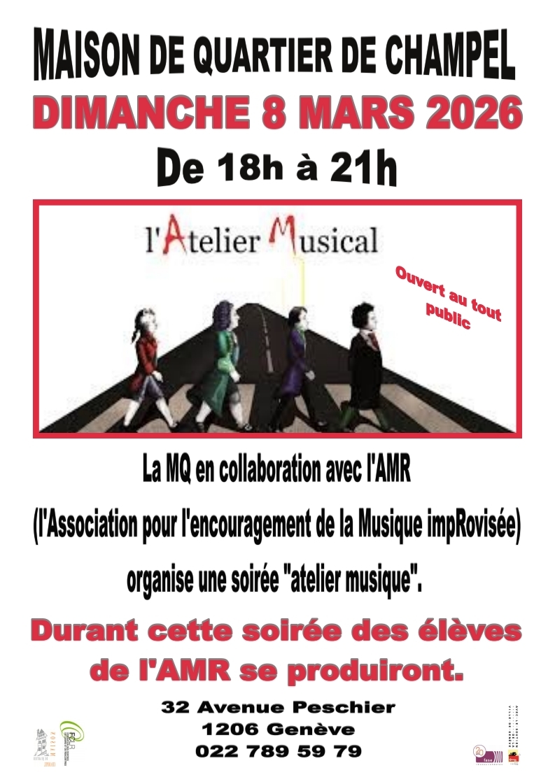 Les ateliers musicaux avec l’AMR (l’Association pour l’encouragement de la Musique impRovisée) permettent à différents musiciens de se produire et donc de mettre en pratique les enseignements prodigués par leurs professeurs de musique.